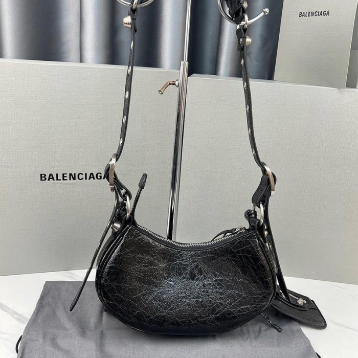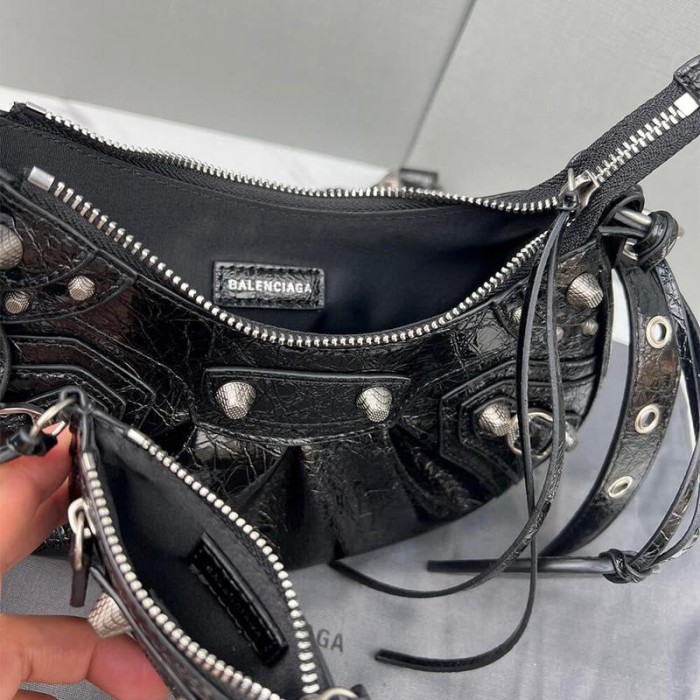 Le Cagole XS Shoulder Bag in black Arena lambskin, aged silver hardware