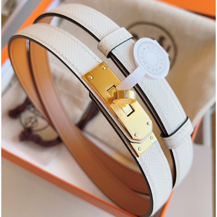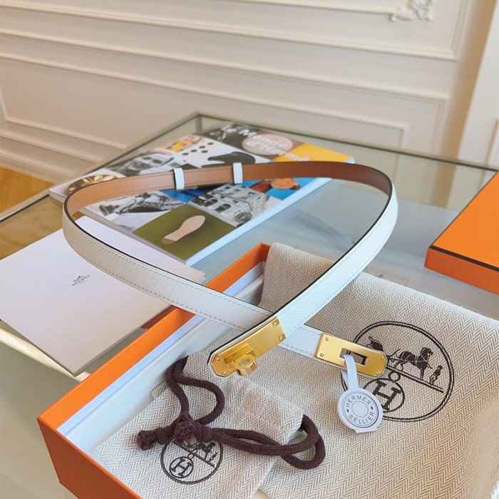 Leather belt in Epsom calfskin with Kelly buckle.