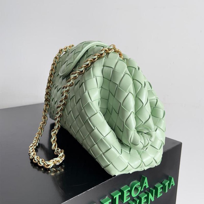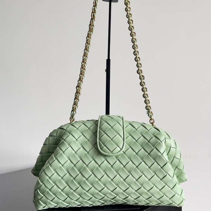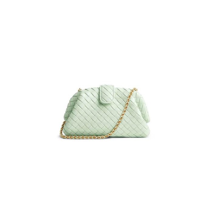 Padded Intrecciato leather clutch with leather braided metal chain