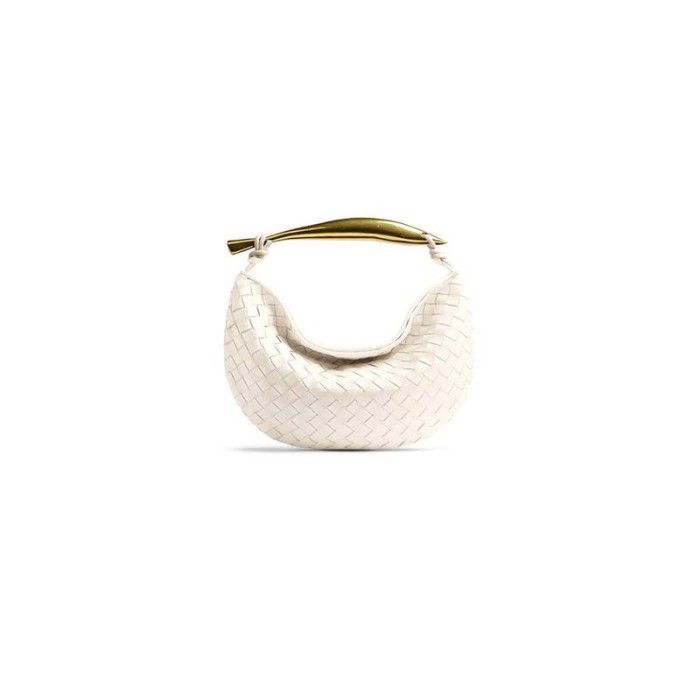 Medium Intrecciato leather shoulder bag with metallic top handle and leather shoulder strap