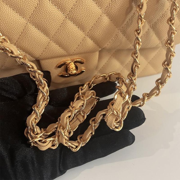 Beige with gold hardware, Medium Size