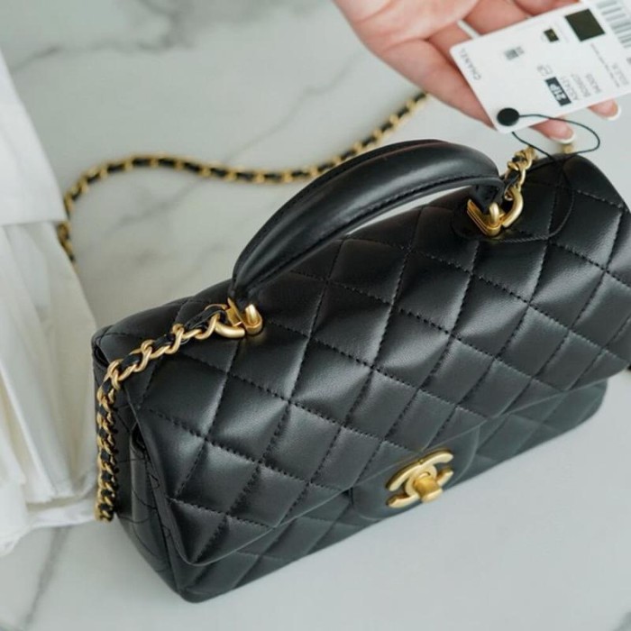 Black Quilted Lambskin