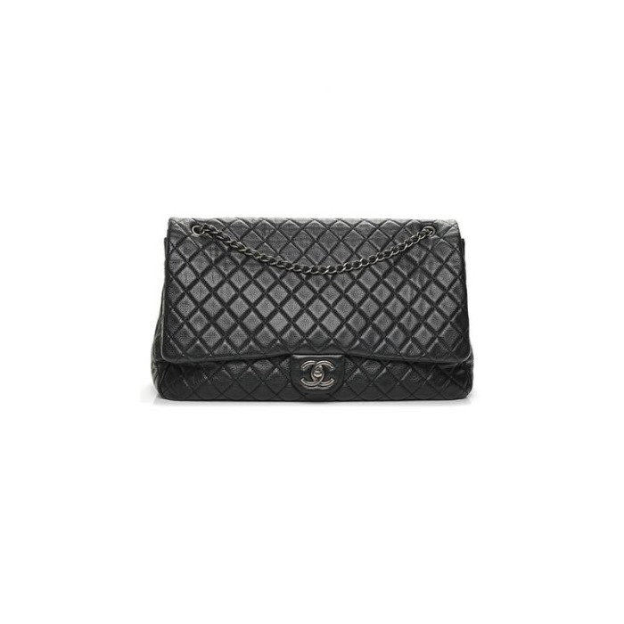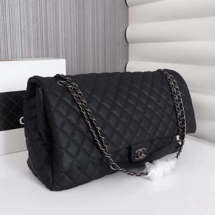 Quilted XXL Travel Flap Bag Black, caviar