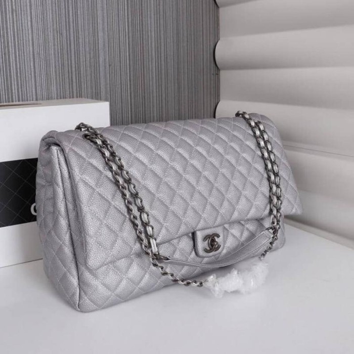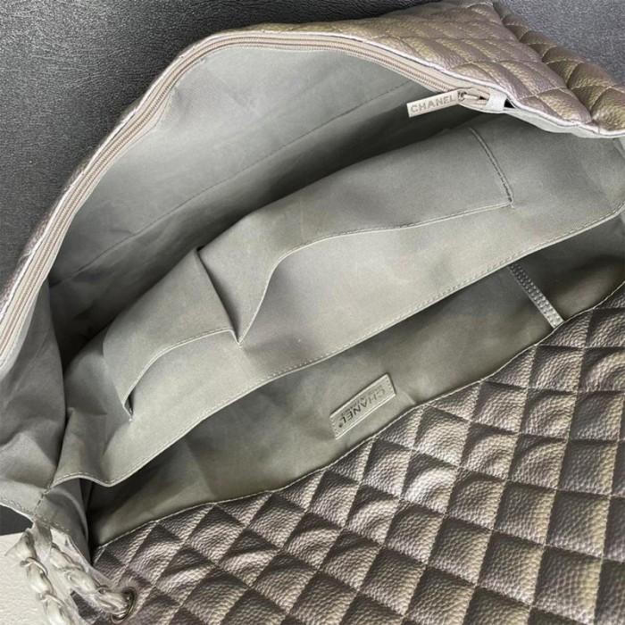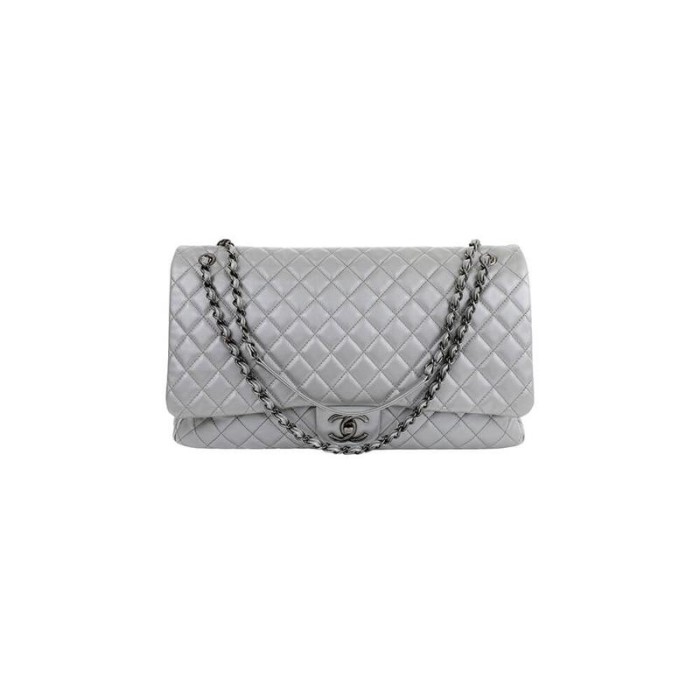Calfskin Quilted XXL Travel Flap Bag Black