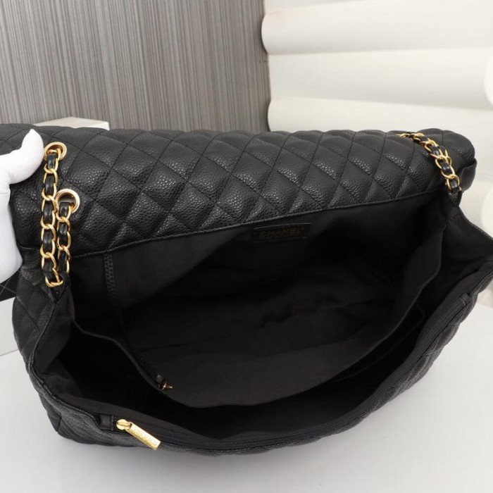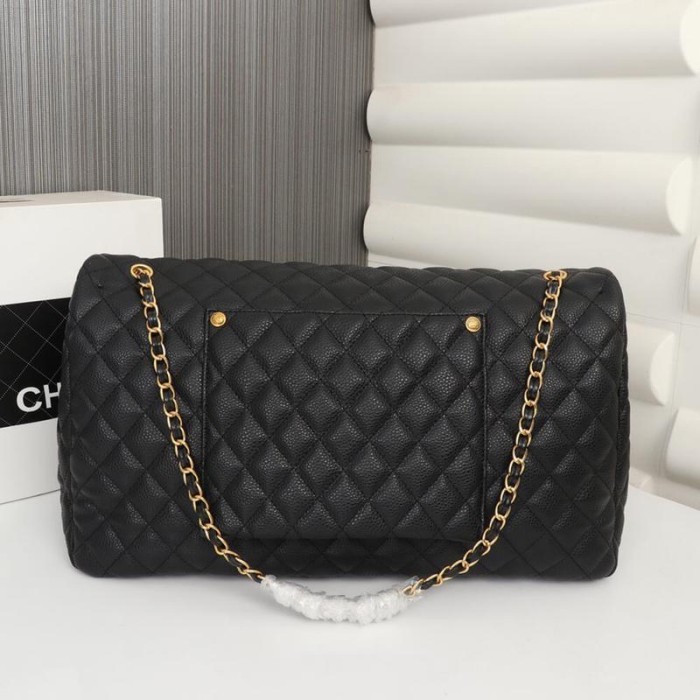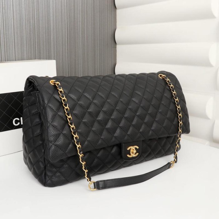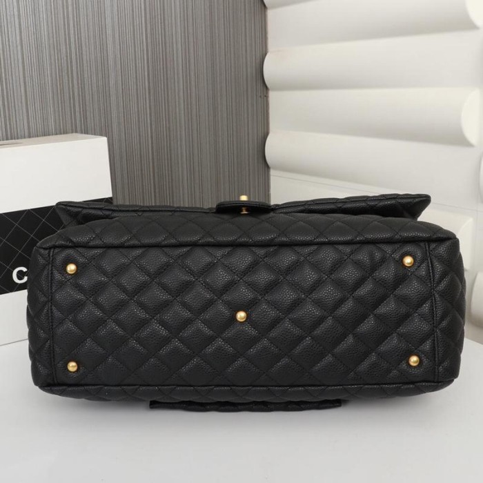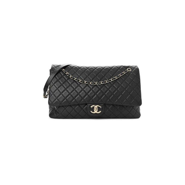 Calfskin Quilted XXL Travel Flap Bag Black