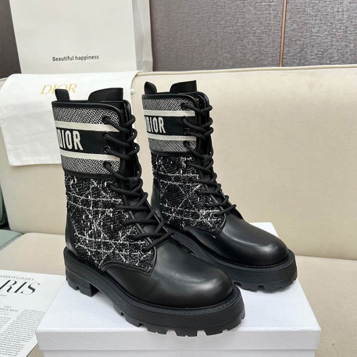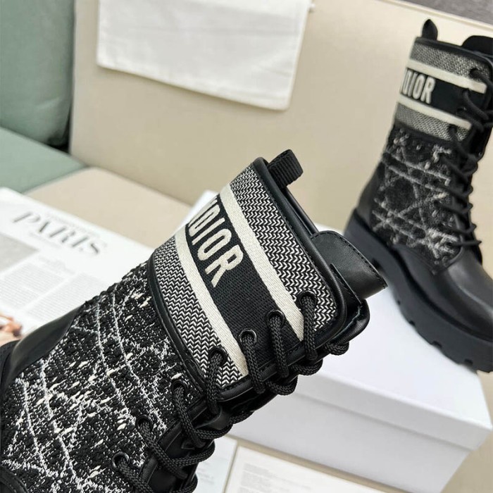 Black and White Cannage Tweed, Black Calfskin and Ecru Lambskin Shearling