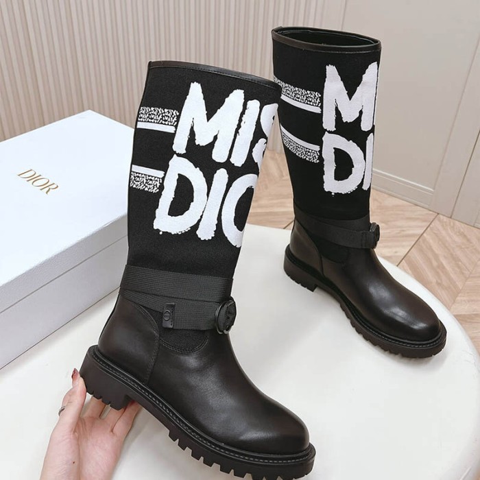 Black Technical Fabric with White Miss Dior Graffiti Print and Black Calfskin