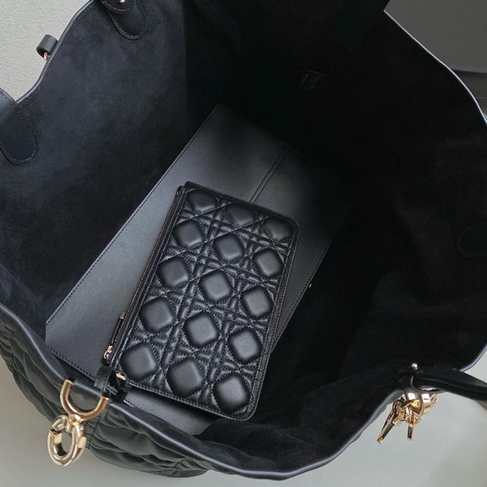 The bag’s large size can accommodate a 15-inch laptop, a pouch, a wallet, a phone, a card holder, sunglasses and lipstick