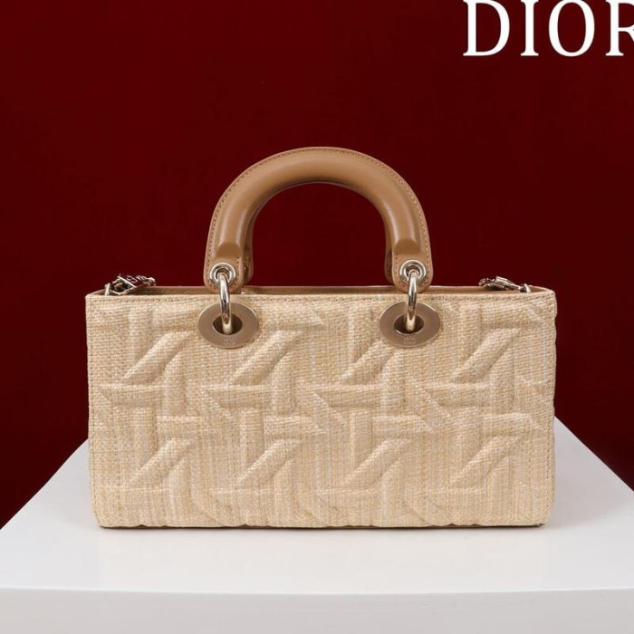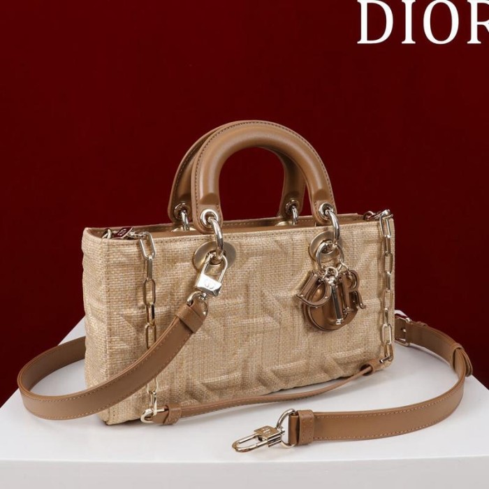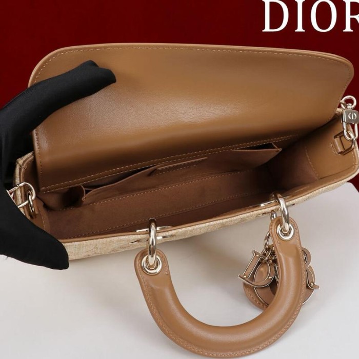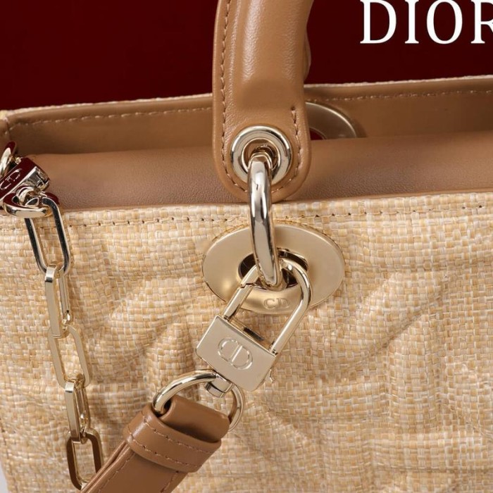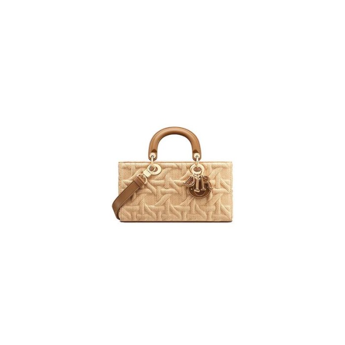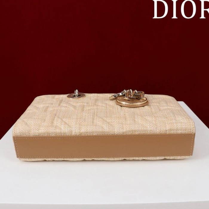 Medium Lady D-Joy Bag Beige Graphic Cannage Raffia