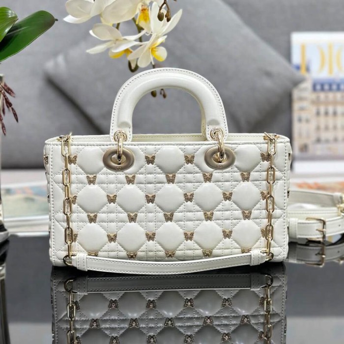 White Cannage Lambskin with Gold-Finish Butterfly Studs
