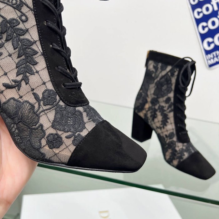 Transparent Mesh with Black Dior Roses Embroidery and Suede Goatskin