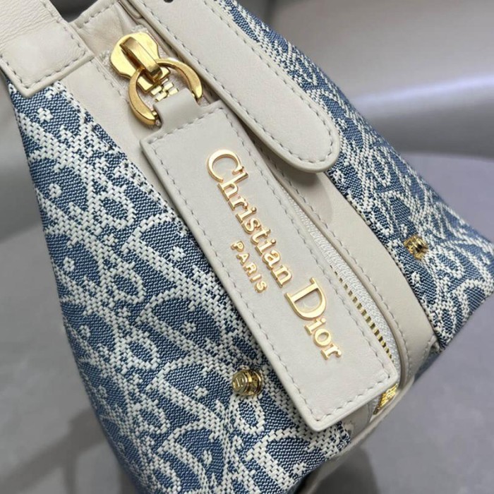 Blue Dior Oblique Chambray with Raffia Effect and Light Biscuit Smooth Calfskin