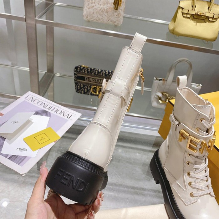 Fendi Fendigraphy Logo-Plaque Leather Boots