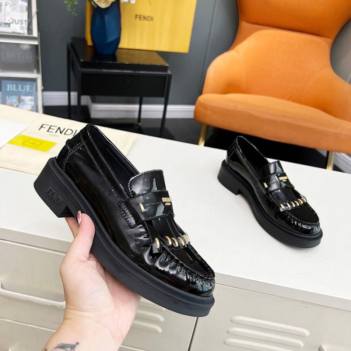 Black leather loafers