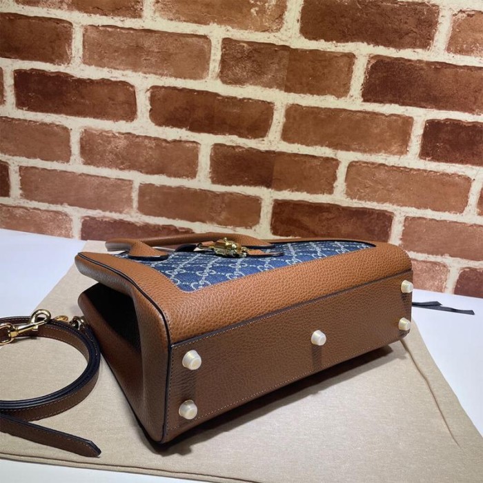Dark blue and ivory eco washed organic GG jacquard denim