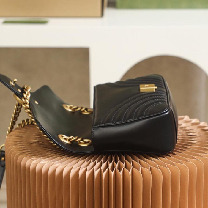Sliding chain strap can be worn as a shoulder strap with 22?? drop, as a top handle with 12?? drop or as a cross body bag.