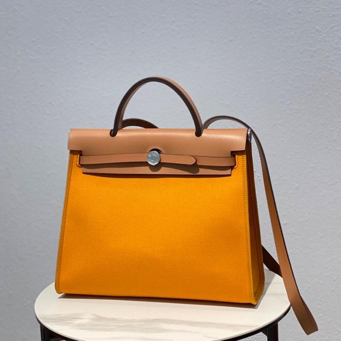 Brown leather with yellow H Berline canvas