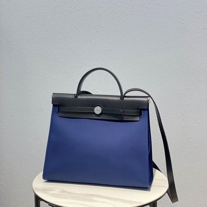 Black leather with blue H Berline canvas