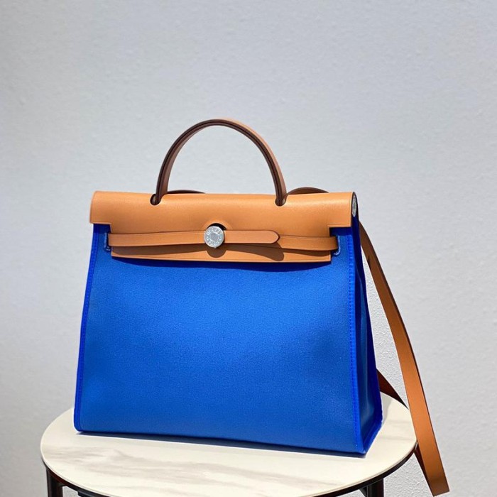 Brown leather with blue H Berline canvas