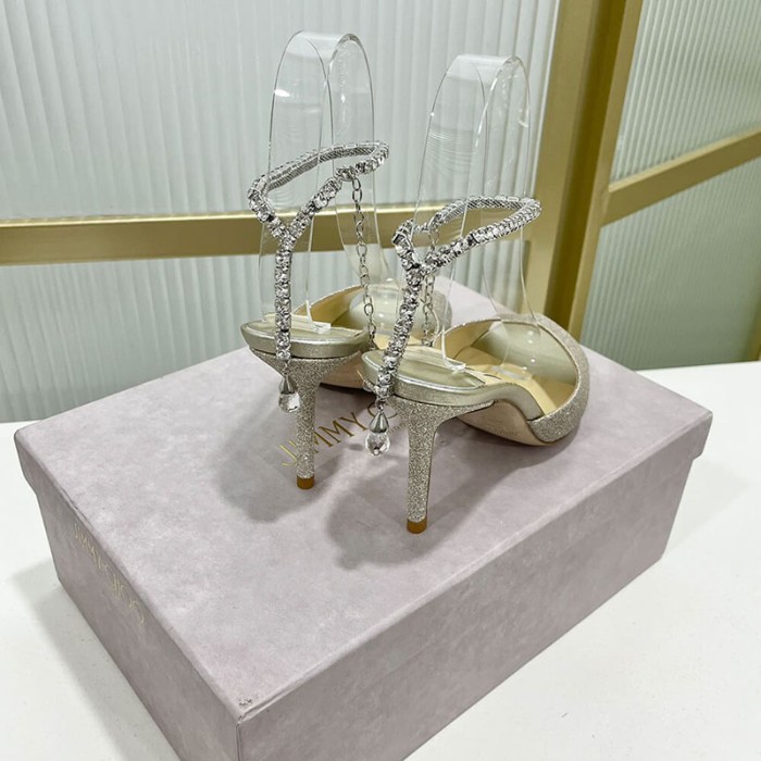 Platinum Ice Dusty Glitter Sandals with Crystal Embellishment