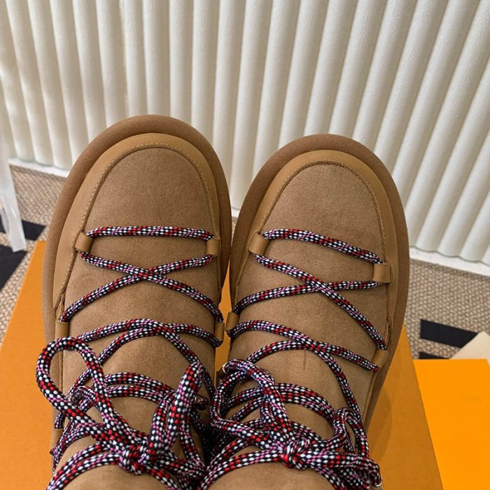 Monogram-debossed suede calf leather and shearling