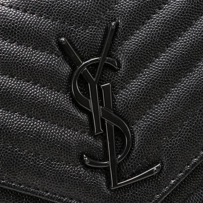Saint Laurent Chain-Strap Ysl-Plaque Grained-Leather Wallet