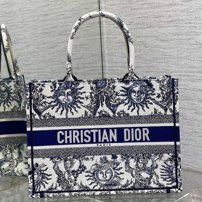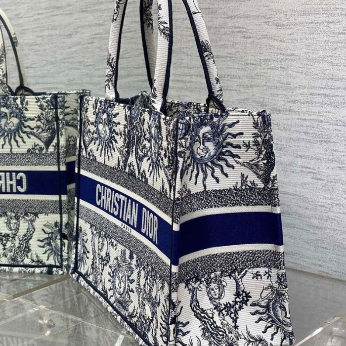 White and Navy Blue Toile de Jouy Soleil Embroidery (36 x 27.5 x 16.5 cm)