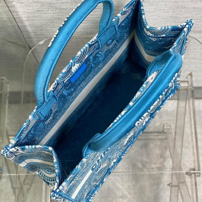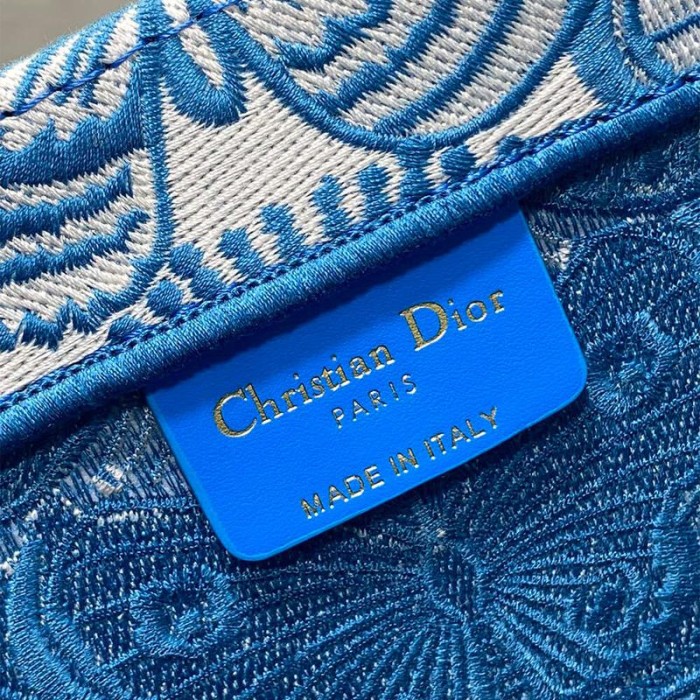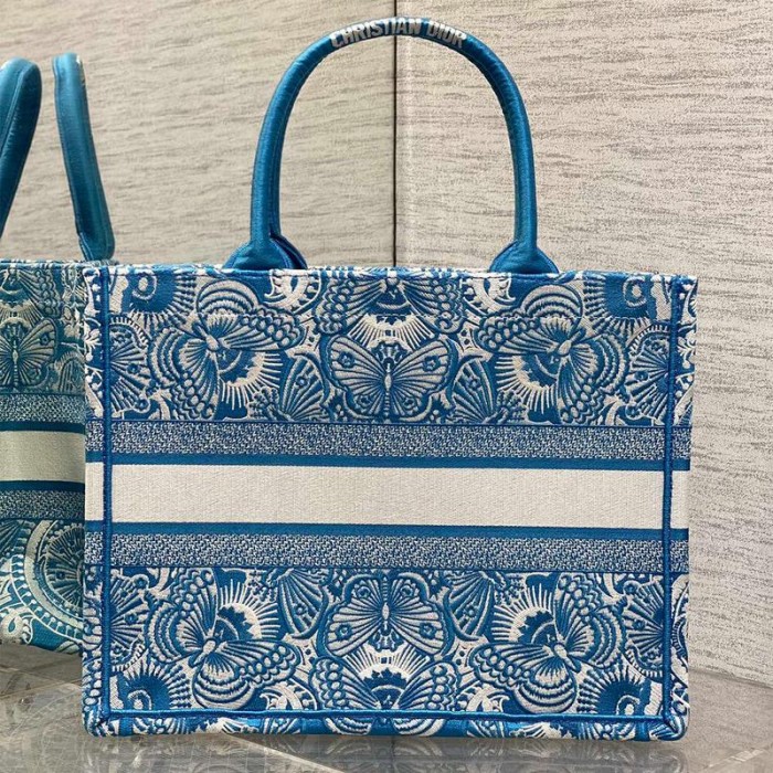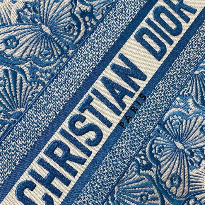 Raffia with Blue Toile de Jouy Papillon Embroidery (36 x 27.5 x 16.5 cm)
