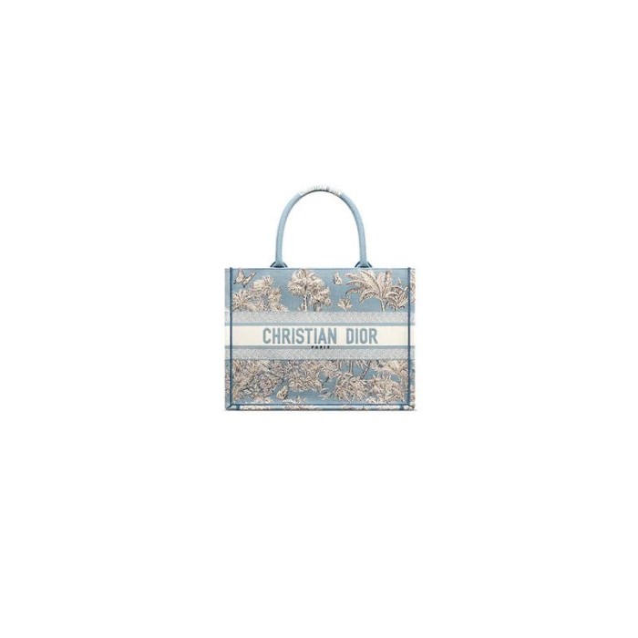 Celestial Blue and White Toile de Jouy Palms Embroidery (36 x 27.5 x 16.5 cm)