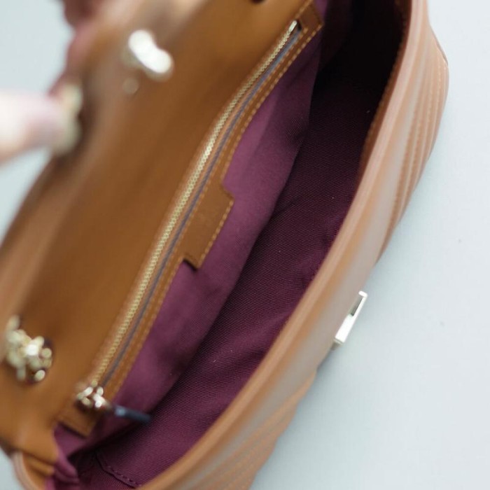 Brown matelasse chevron lambskin leather