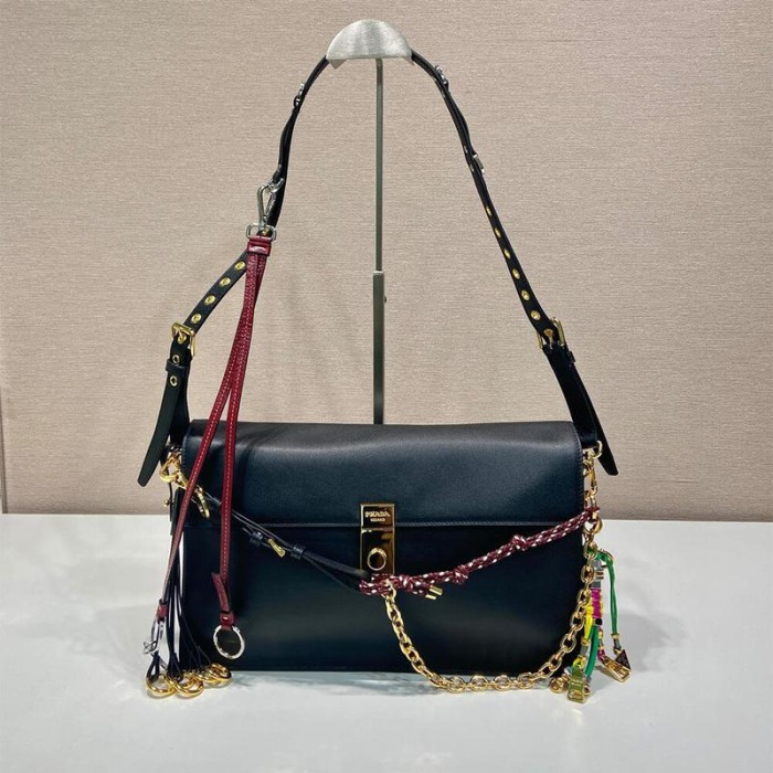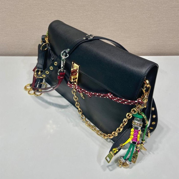 Prada Soft Sound Large Leather Shoulder Bag With Charms(High-End Grade)