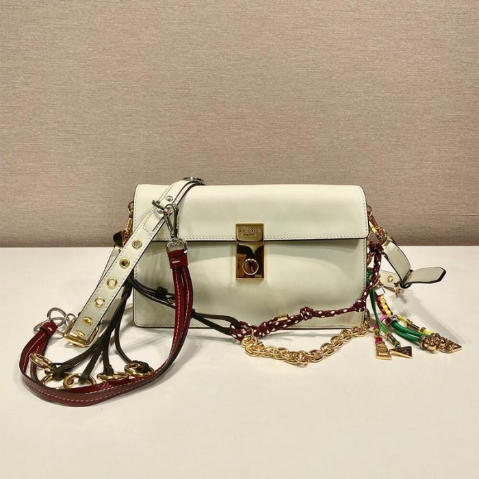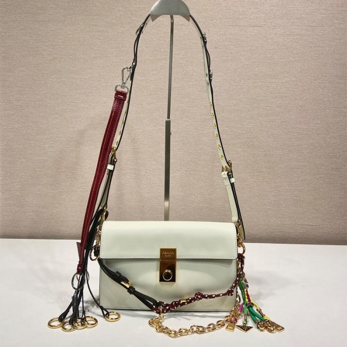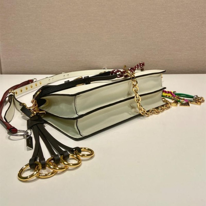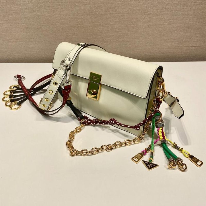 Prada Soft Sound Small Leather Shoulder Bag With Charms(High-End Grade)