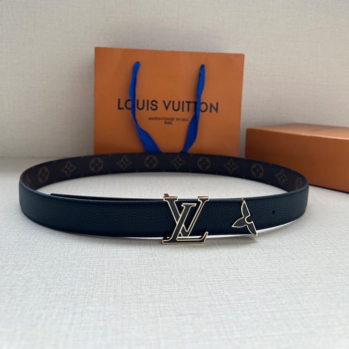 Black enamel LV Initiales buckle
