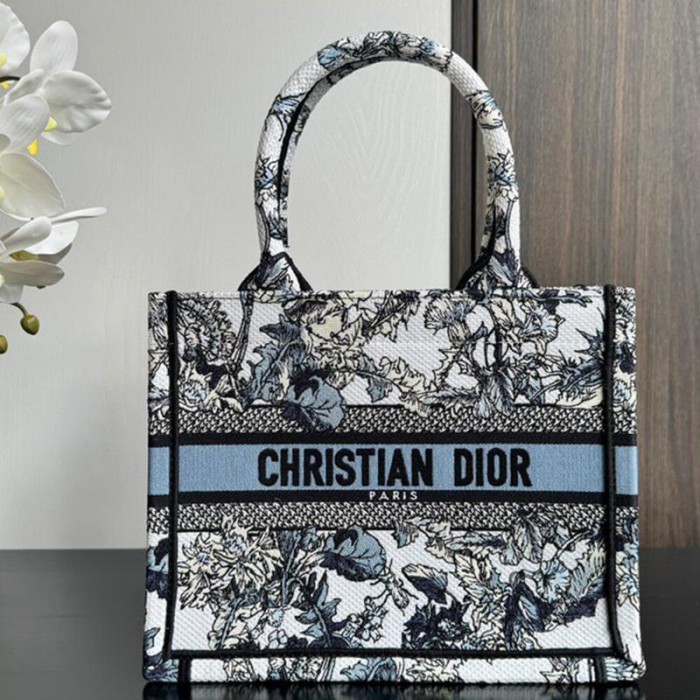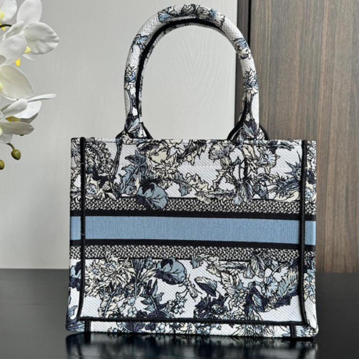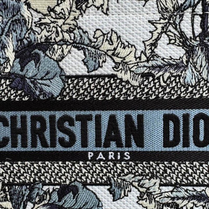 White Embroidery with Denim Blue Dior Chardons Motif (26.5 x 22 x 14 cm)