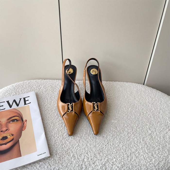 Slingback pumps with a cut-out elongated toe decorated with the CASSANDRE.